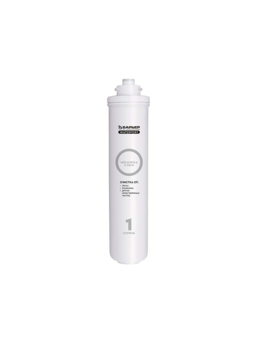 В фильтрах Барьер серии WaterFort OSMO картридж Механика-5 мкм используется в качестве первой ступени фильтрации, обеспечивая эффективную предварительную очистку воды перед дальнейшей обработкой.