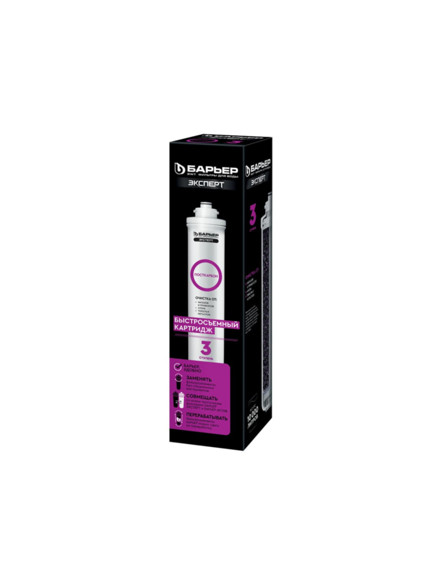 Используется в качестве третьей ступени очистки воды в фильтрах Барьер серии Эксперт:
