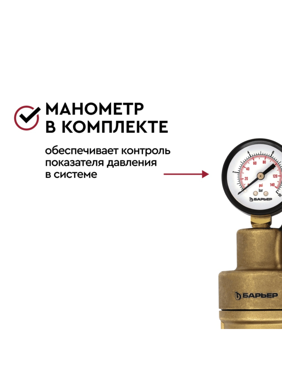 Магистральный фильтр с манометром Барьер Протект универсальный 3/4 ГВС