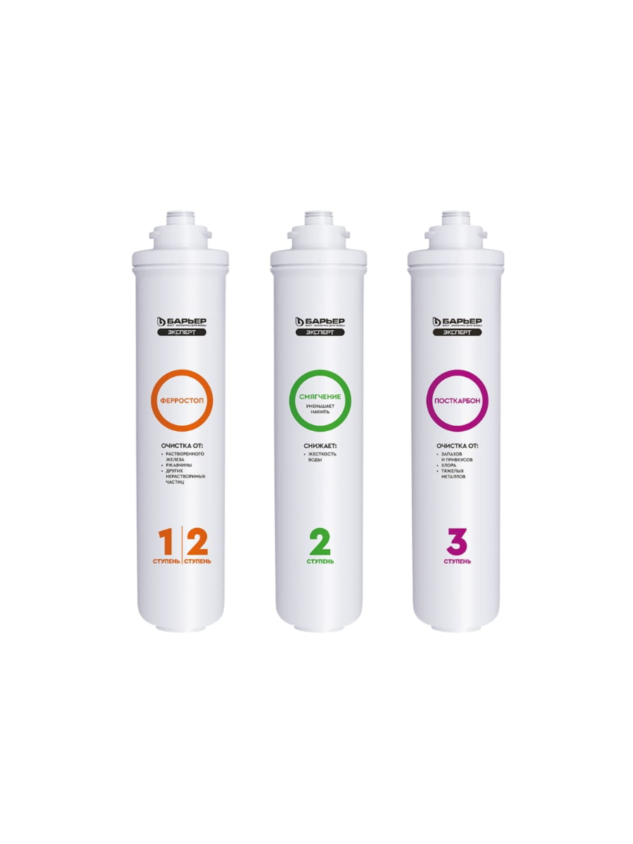 Комплект Барьер Эксперт Комплекс предназначен для замены фильтрующих элементов в проточном фильтре Барьер Эксперт Комплекс. Этот набор включает три высокоэффективных фильтроэлемента, которые обеспечивают комплексную очистку воды от различных примесей и загрязнений.