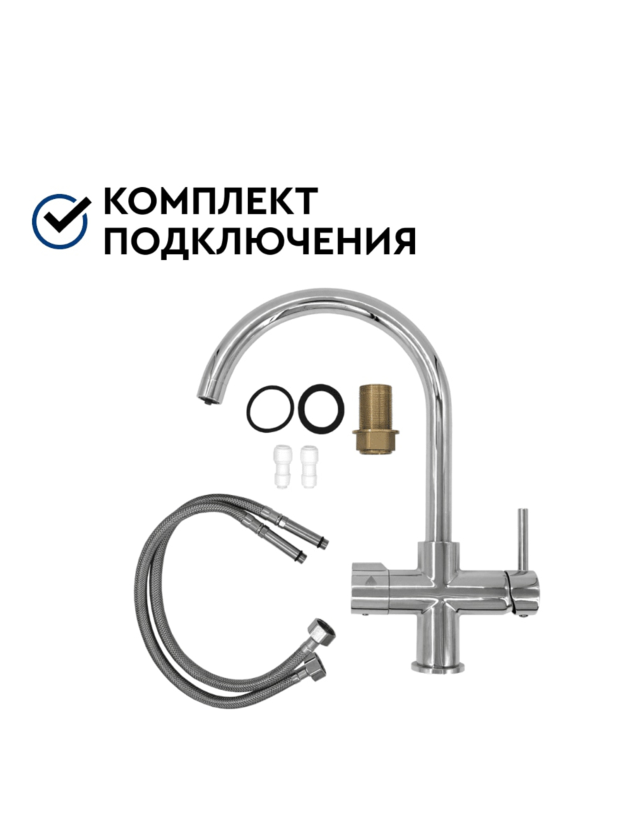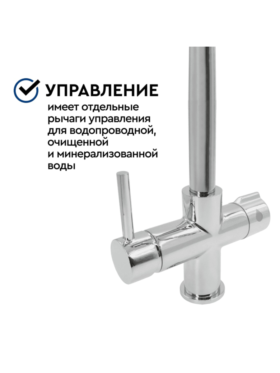 - Комбинированный тип крана позволяет свободно переключаться между обычным водоснабжением и фильтрованной питьевой водой, обеспечивая удобство и практичность использования;