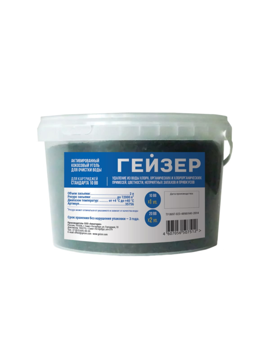 Гейзер КУ-10BB — это высококачественный фильтрующий материал, изготовленный из активированного гранулированного угля на основе кокосовой скорлупы. Предназначен для эффективного удаления из воды нежелательных примесей, хлора и его соединений, органических веществ, а также улучшения органолептических свойств жидкости.