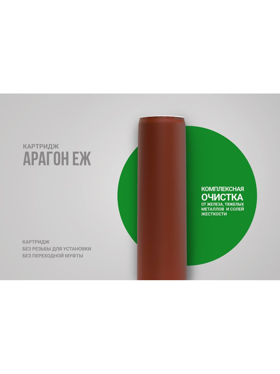 Особенность конструкции картриджа Арагон-ЕЖ заключается в отсутствии резьбового соединения, что позволяет устанавливать его в стандартный корпус SL10 без использования уплотнительной муфты, обеспечивая простоту и удобство эксплуатации.
