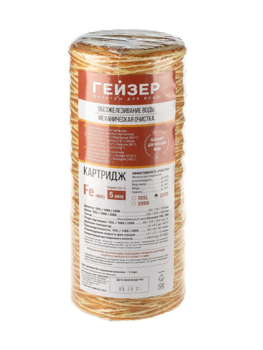 Обезжелезивающий картридж Гейзер Fe-10BB (mix) для комплексной очистки воды