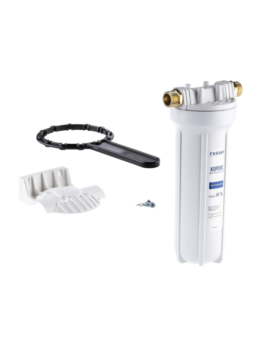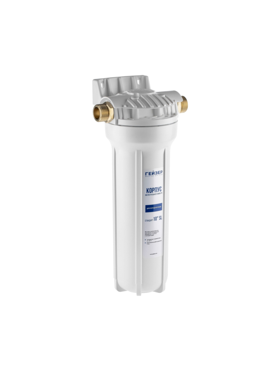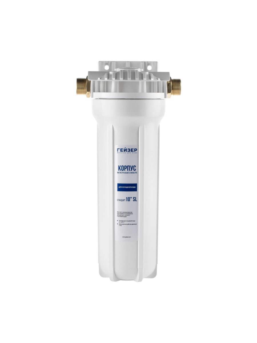 Корпус магистрального фильтра Гейзер 10SL 3/4 предназначен для фильтрации холодной воды в системах централизованного водоснабжения.