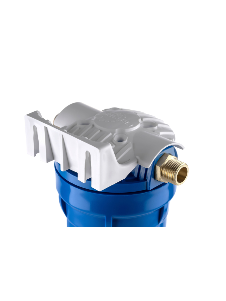 - В комплект поставки входят монтажный кронштейн для удобного крепления фильтра на стене и пластиковый ключ для быстрого и легкого снятия колбы при замене фильтрующего элемента.