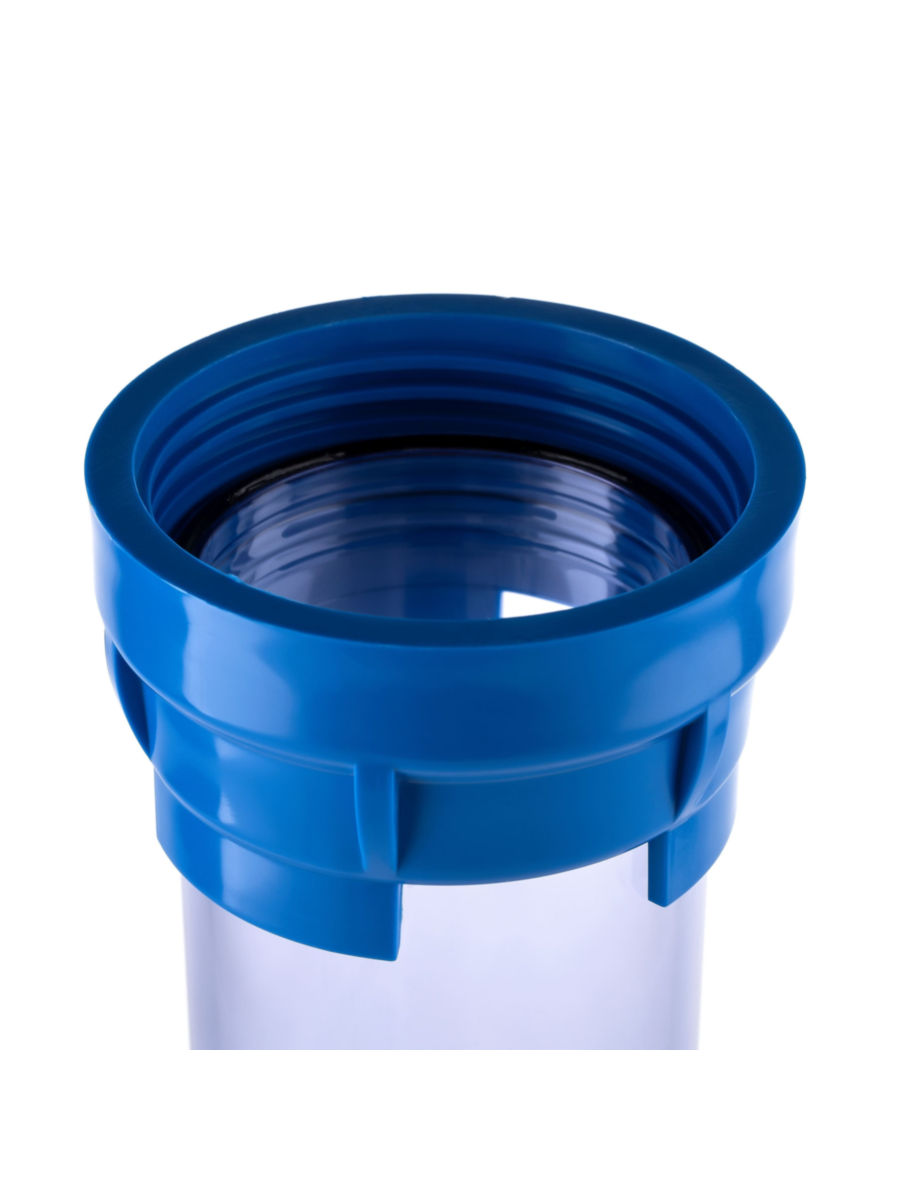 - Прозрачная колба позволяет наглядно контролировать степень загрязнения фильтрующего элемента, упрощая определение момента замены картриджа.