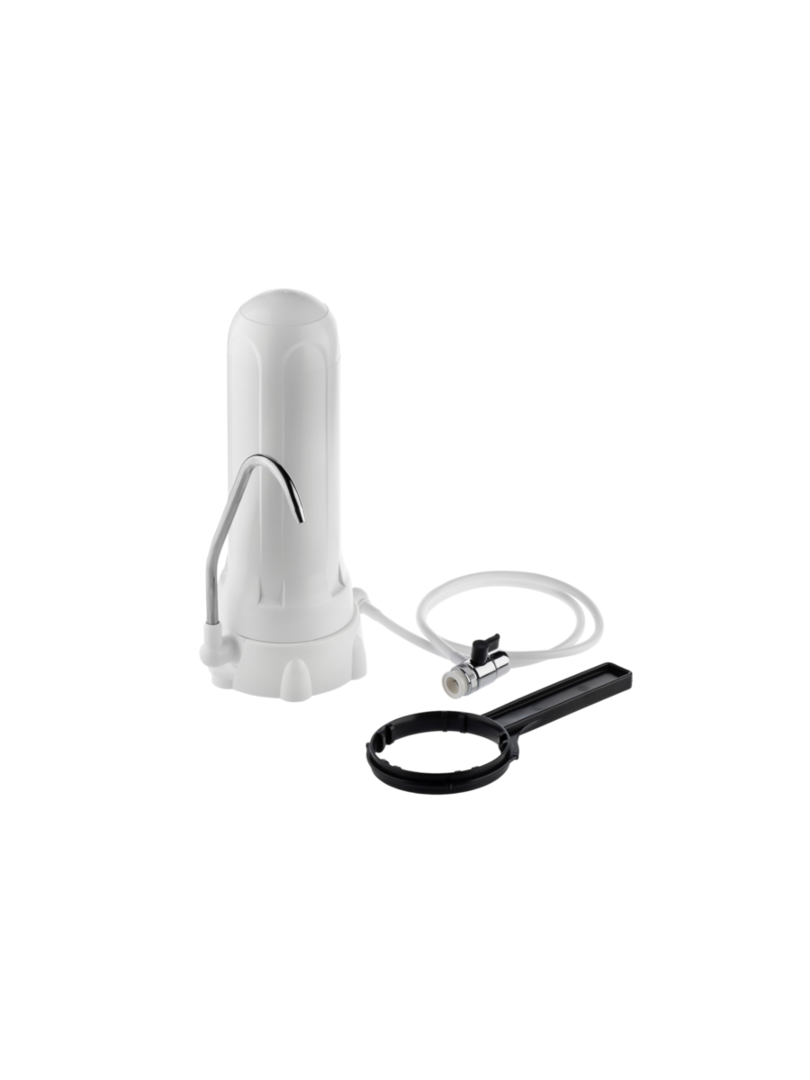 Практичное и удобное решение для борьбы с чрезмерной жесткостью воды и неприятными запахами, возникающими при кипячении. Современный настольный фильтр Гейзер-1УЖ Евро установлен на столешнице рядом с кухонной мойкой и заметно улучшает качество питьевой воды.