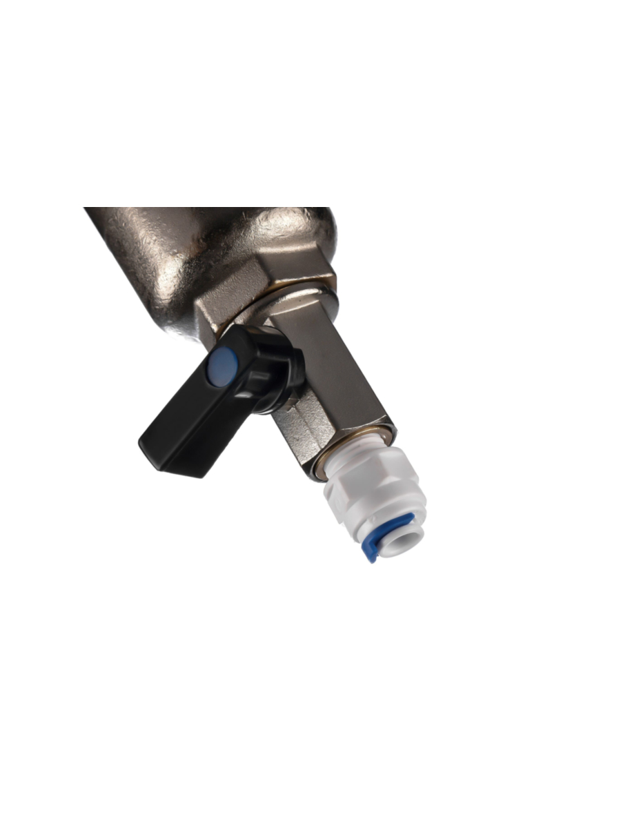 - В комплект поставки входят радиальный манометр и фитинги с наружной резьбой 1/2 дюйма, обеспечивающие удобную установку и надежное подключение фильтра к водопроводу.