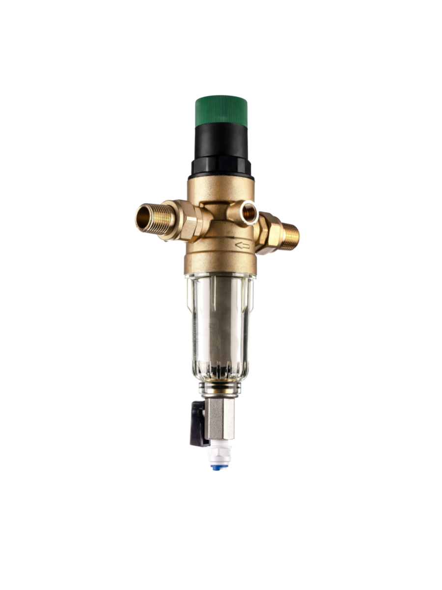 - Оснащен редуктором, позволяющим регулировать давление воды на выходе в диапазоне от 2 до 6 атмосфер, что обеспечивает защиту сантехники и бытовой техники от перегрузок.