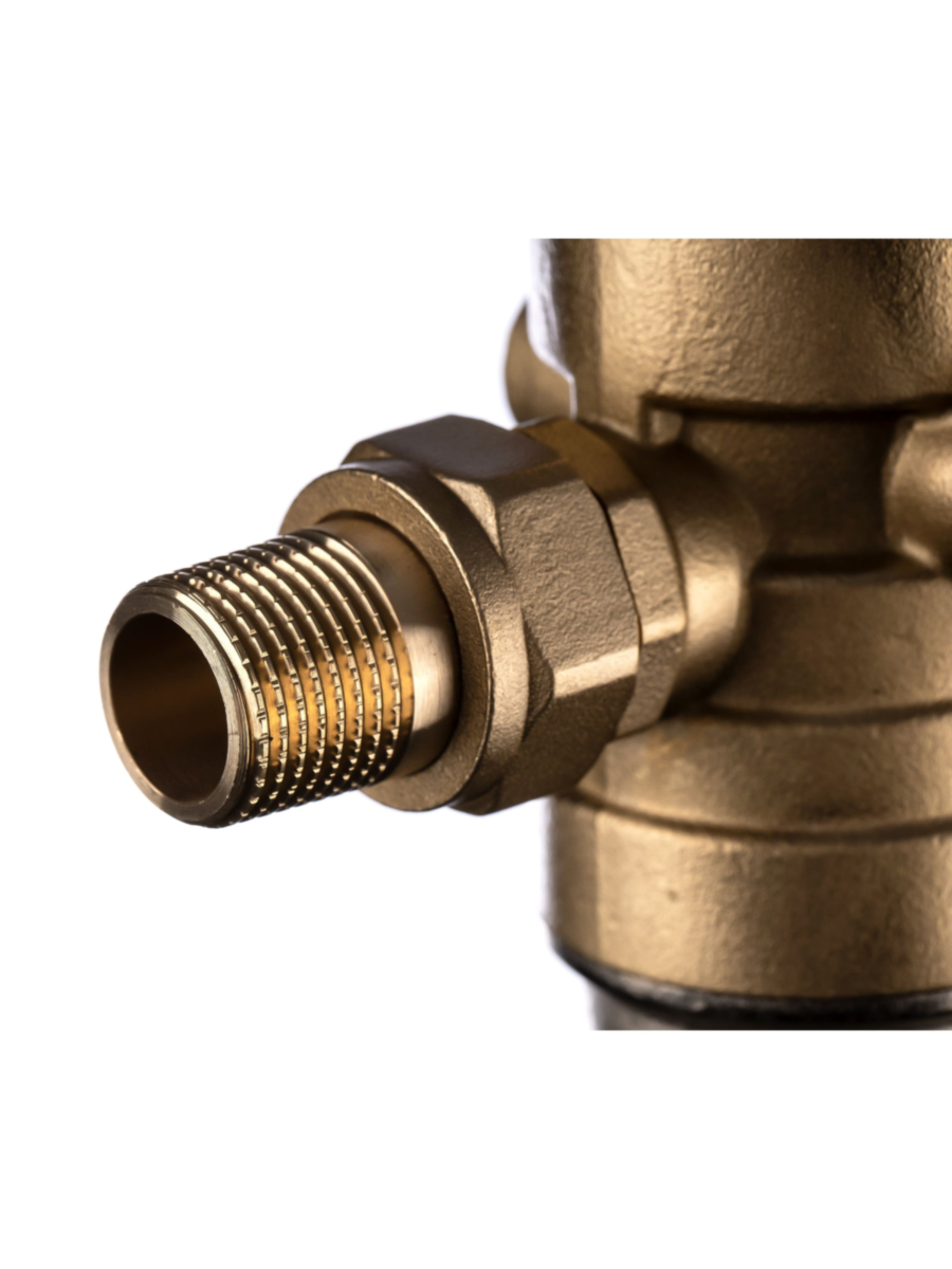 - Латунная колба фильтра позволяет обрабатывать горячую воду, нагретую до температуры +80°C, что делает его подходящим для систем горячего водоснабжения.