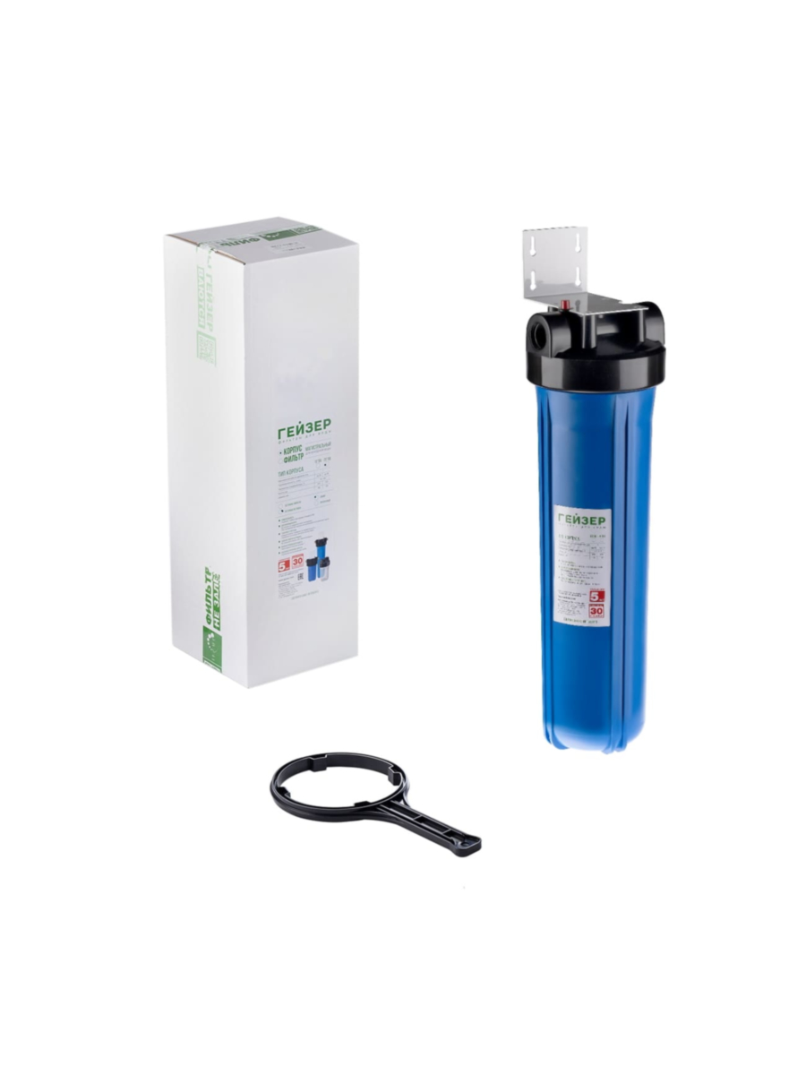 Корпус магистрального фильтра Гейзер BB20 предназначен для комплексной очистки воды, поступающей по холодному водоснабжению, и подходит для установки в бытовых условиях.