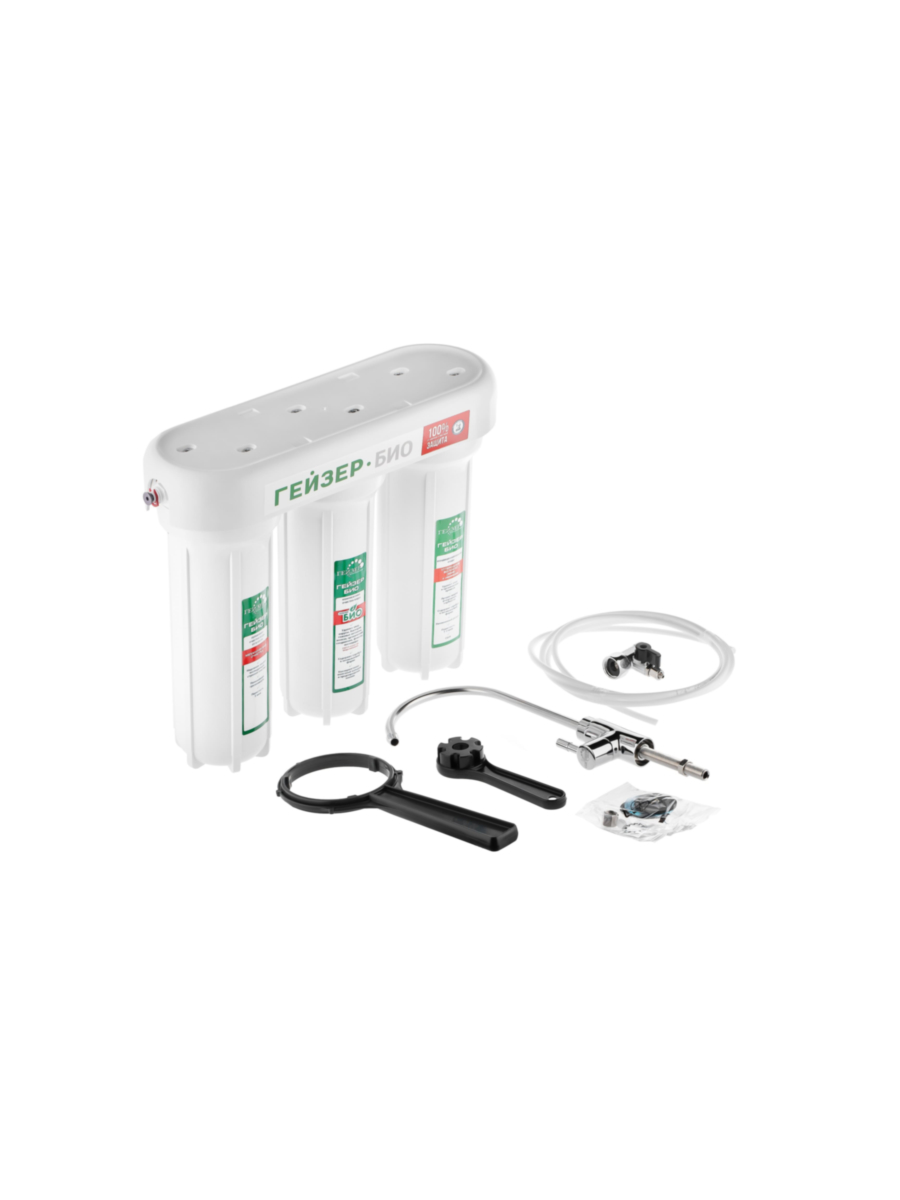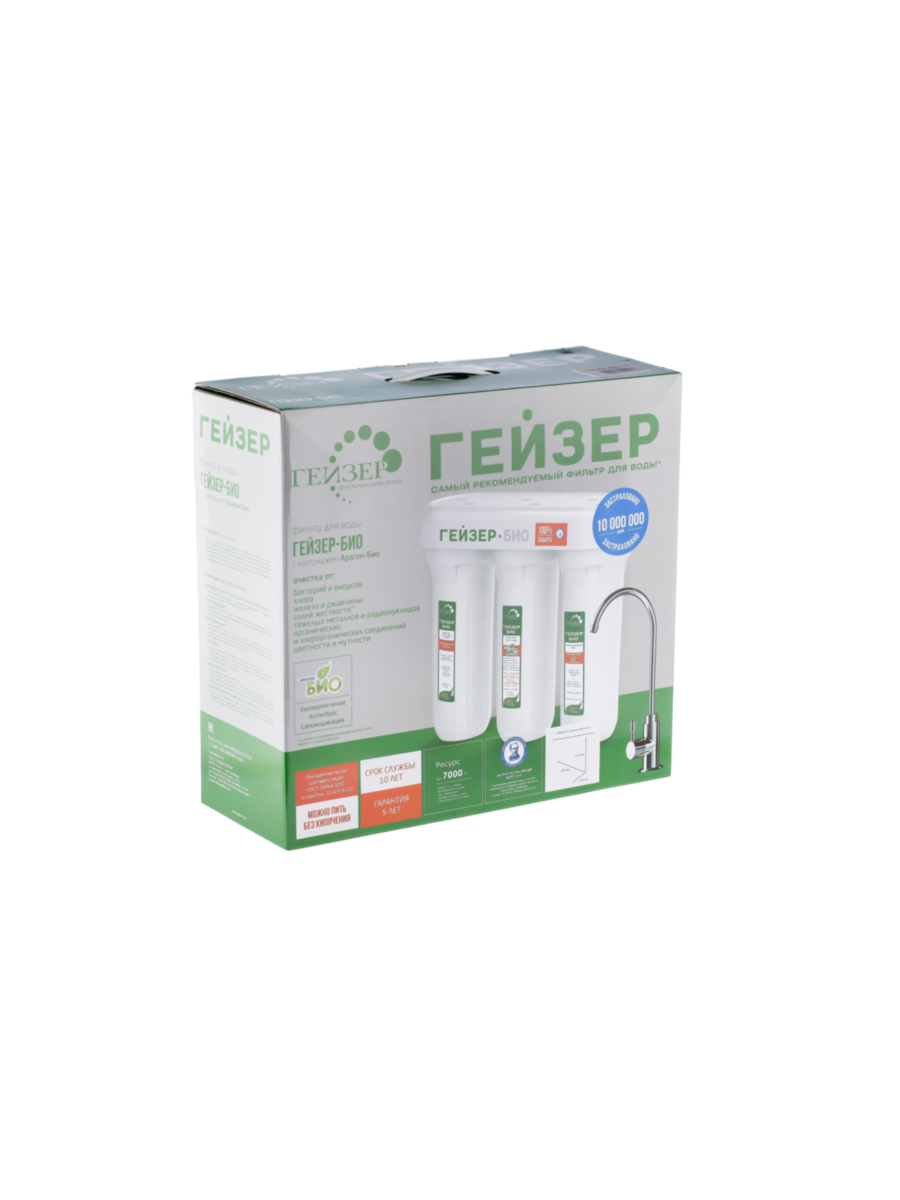 Гейзер БИО 321 — это эффективное решение для глубокой очистки питьевой воды, направленное на борьбу с последствиями высокой жесткости. Трехступенчатая система обеспечивает полную очистку воды от вирусов, избыточных солей жесткости и других вредных примесей, делая воду безопасной и комфортной для употребления.