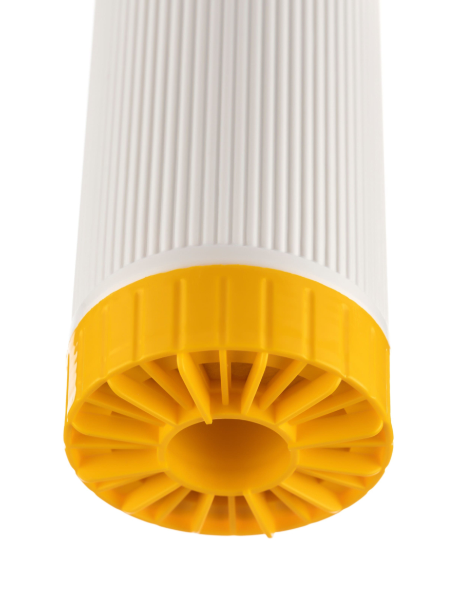 - Изготовлен из ионообменной смолы пищевого класса, размещенной в разборном пластиковом корпусе, что позволяет легко заменять фильтрующий материал при необходимости.