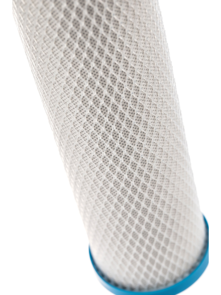 - Уникальная структура позволяет задерживать твердые частицы размером более 10 микрон, предотвращая попадание мелкой взвеси в питьевую воду.