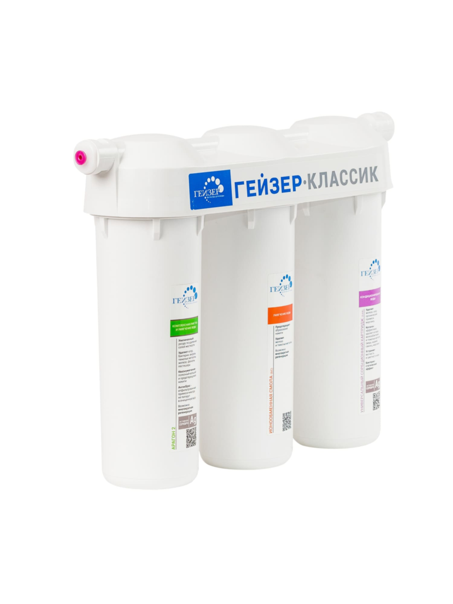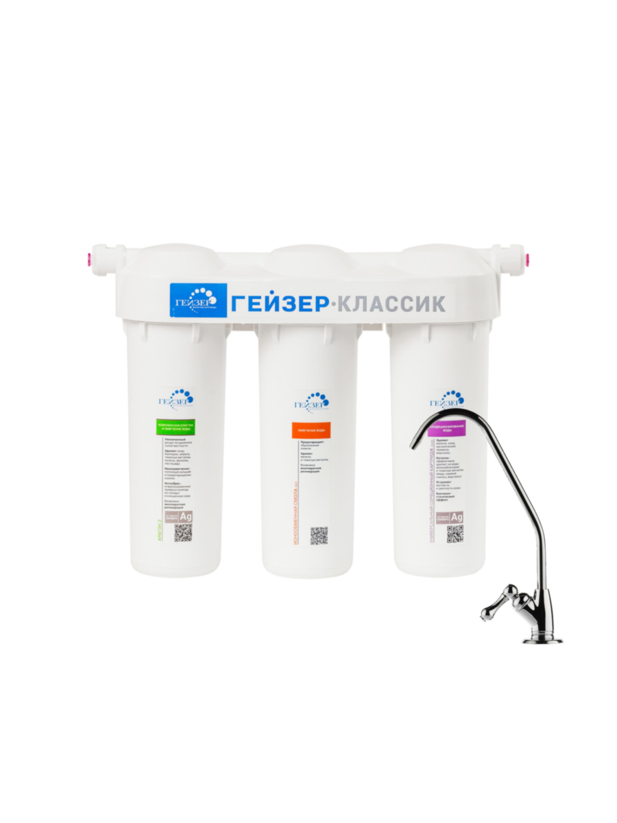 Фильтр Гейзер Классик для сверхжёсткой воды состоит из трех ступеней фильтрации: