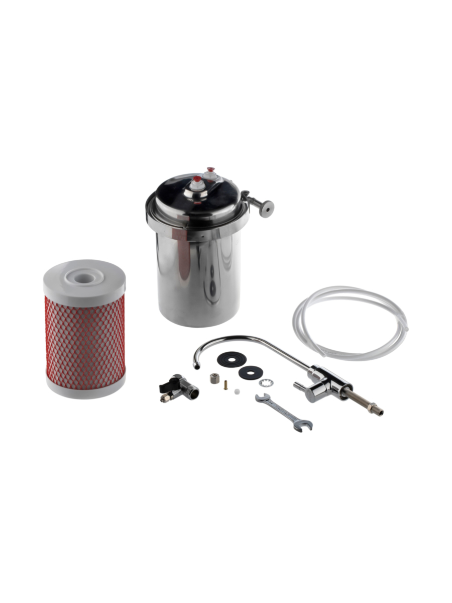 - Компактные габариты позволяют легко установить фильтр в стесненном пространстве, например, под раковину.