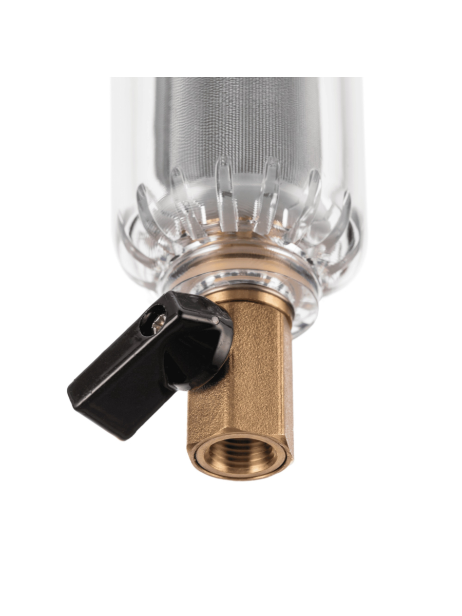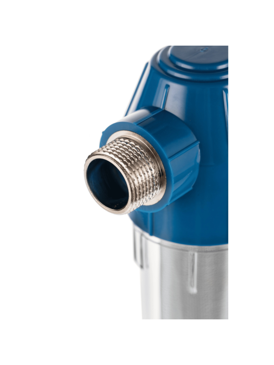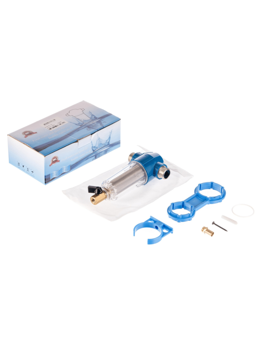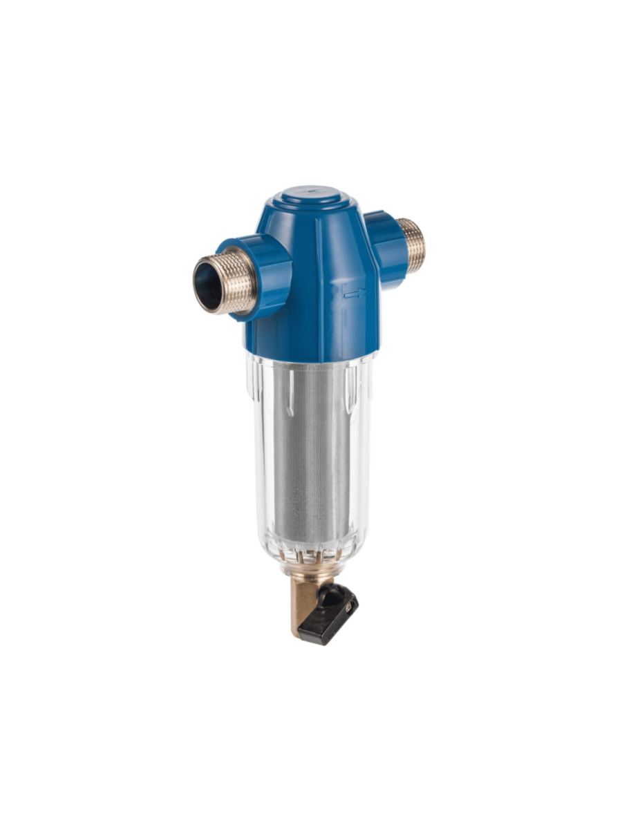 - Прозрачная колба фильтра позволяет визуально оценить степень загрязнения сетки и своевременно провести промывку или замену фильтрующего элемента.