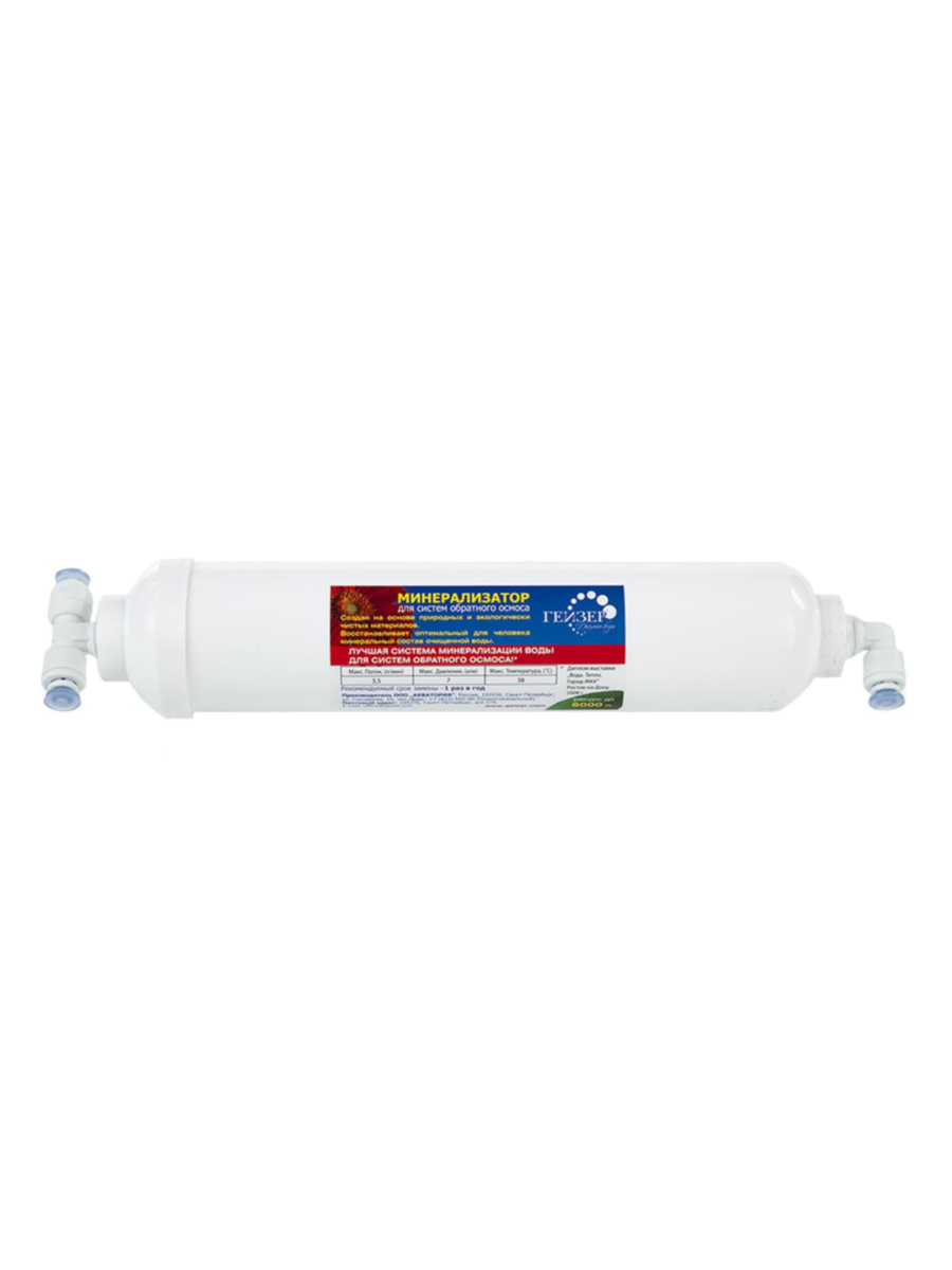 Гейзер В (RO) — это картридж, предназначенный для дополнения воды, очищенной методом обратного осмоса, натуральными минеральными солями. Процесс минерализации восстанавливает природный баланс кальция и магния, утраченных в ходе глубокой очистки, возвращая воде полезные свойства и улучшая её вкусовые качества.