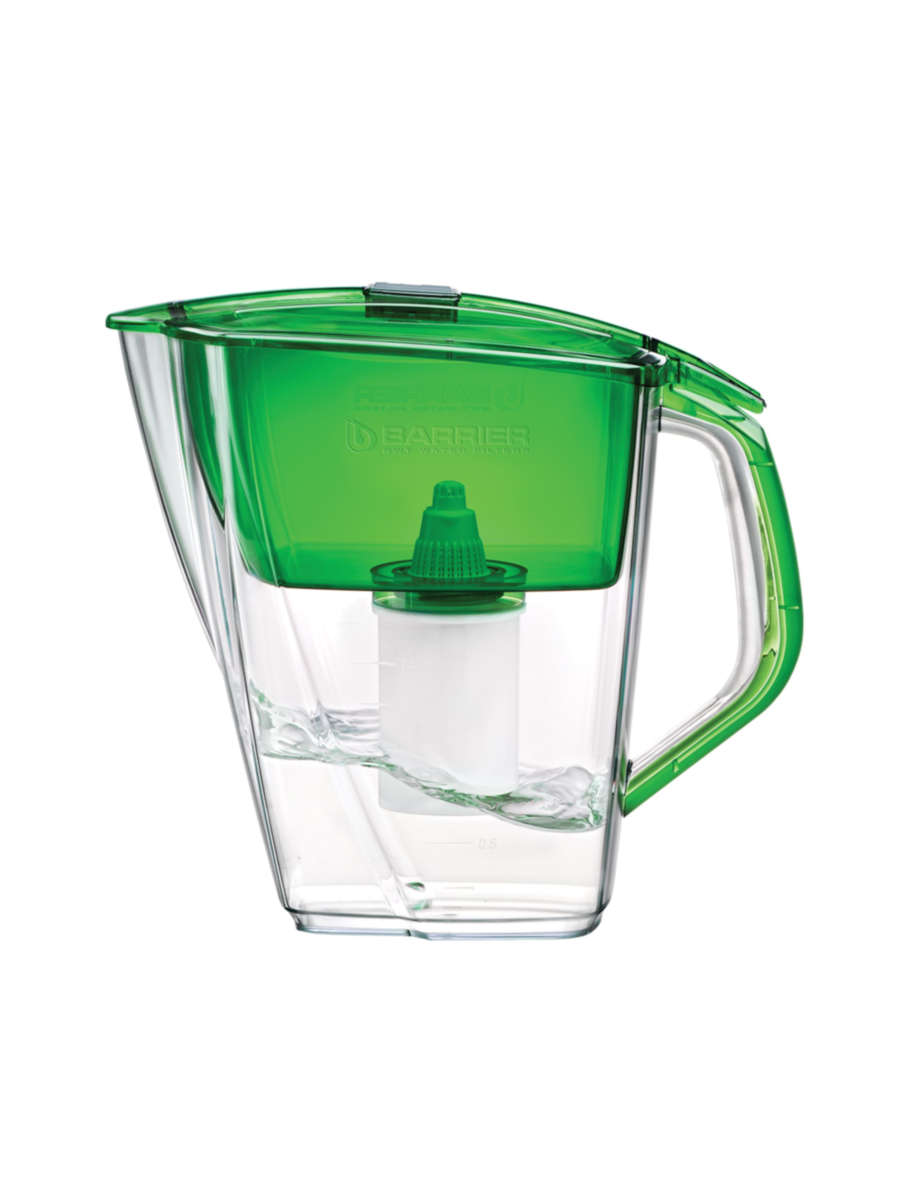 Будьте уверены в пользе и безопасности воды, которую вы используете каждый день, с фильтром-кувшином Барьер Гранд Нео зелёного цвета.