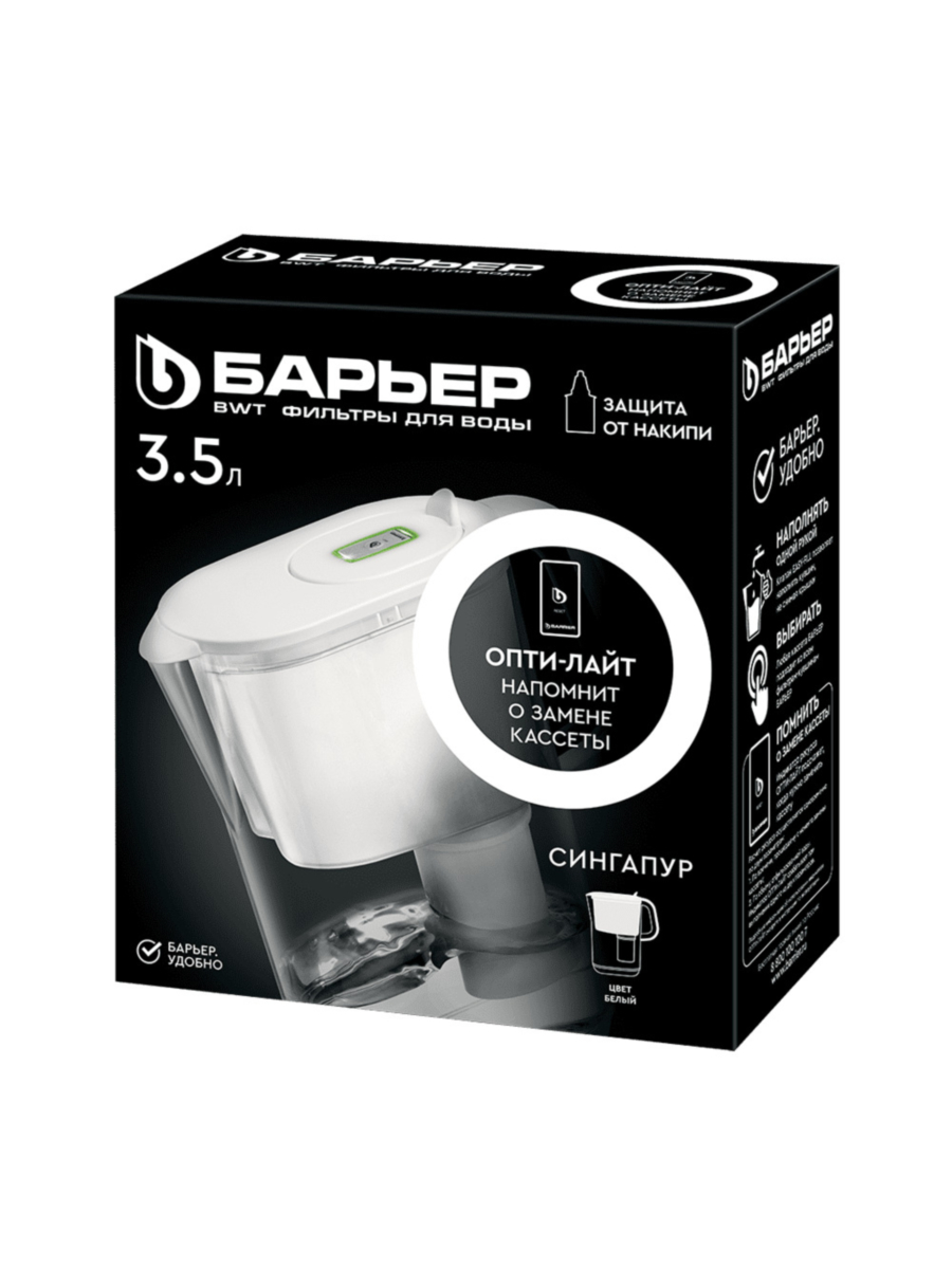 Купите фильтр-кувшин Барьер Сингапур белого цвета и позвольте себе наслаждаться исключительно качественным напитком ежедневно!