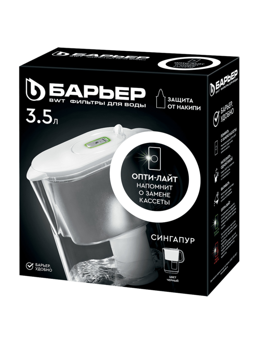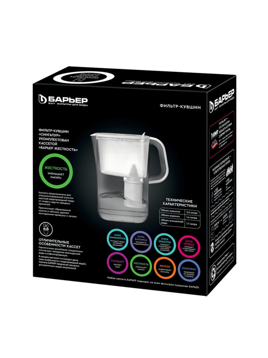 Фильтр-кувшин Барьер Сингапур чёрного цвета — это мудрый выбор для тех, кто ценит эстетику, комфорт и своё здоровье, наслаждаясь вкусом чистой и освежающей воды.