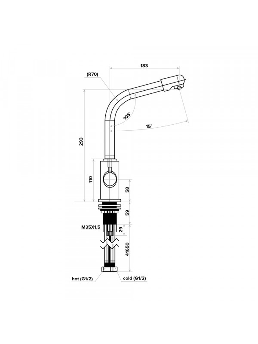 Строгий и лаконичный дизайн смесителя позволяет ему гармонично вписаться в любой интерьер кухни, не нарушая гармонию пространства.