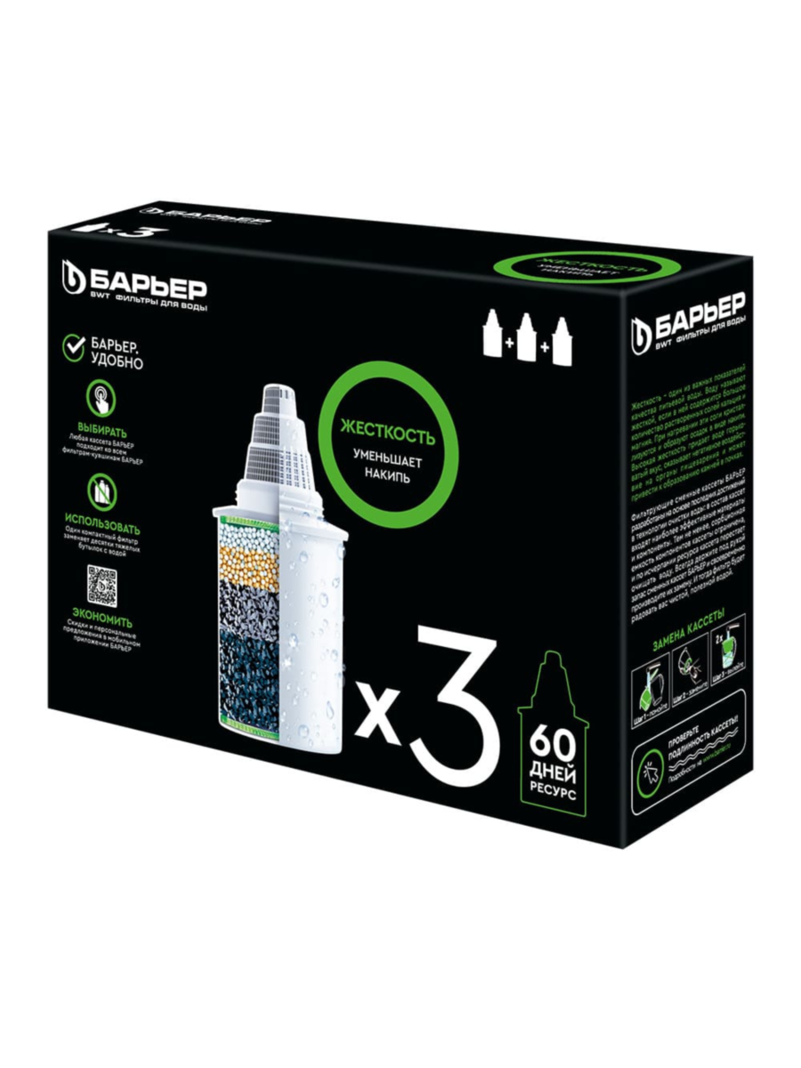 Набор из трёх сменных картриджей Жесткость от Барьер — это оптимальное решение для качественной очистки воды в домашних условиях. Три полноценных картриджа по цене одного набора позволяют обеспечить длительную и эффективную работу фильтра-кувшина, обеспечивая чистую и безопасную воду для всей семьи.
