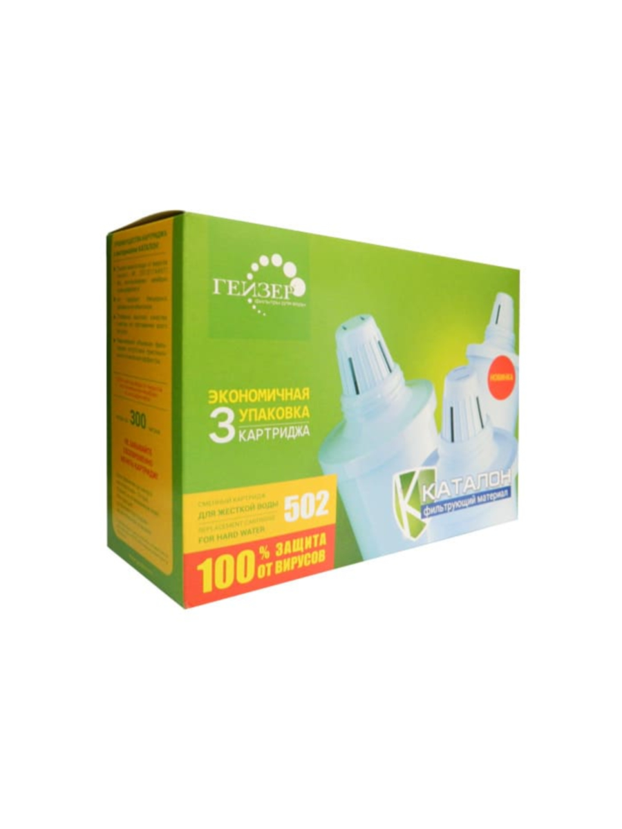 Набор из трёх сменных картриджей №502 для фильтра-кувшина Гейзер