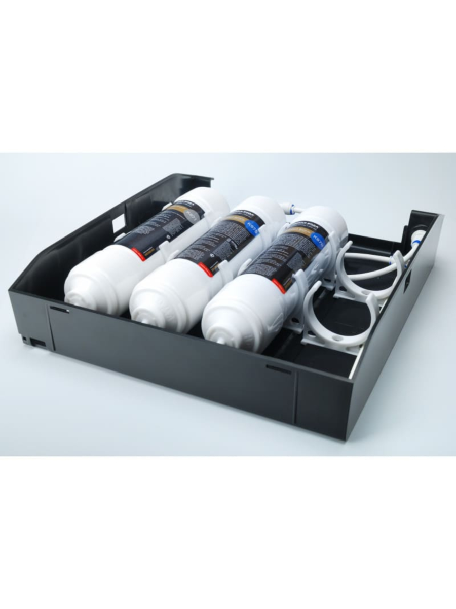 - Блок фильтрации, содержащий три картриджа, закрепленных в корпусе с помощью односторонних клипс.